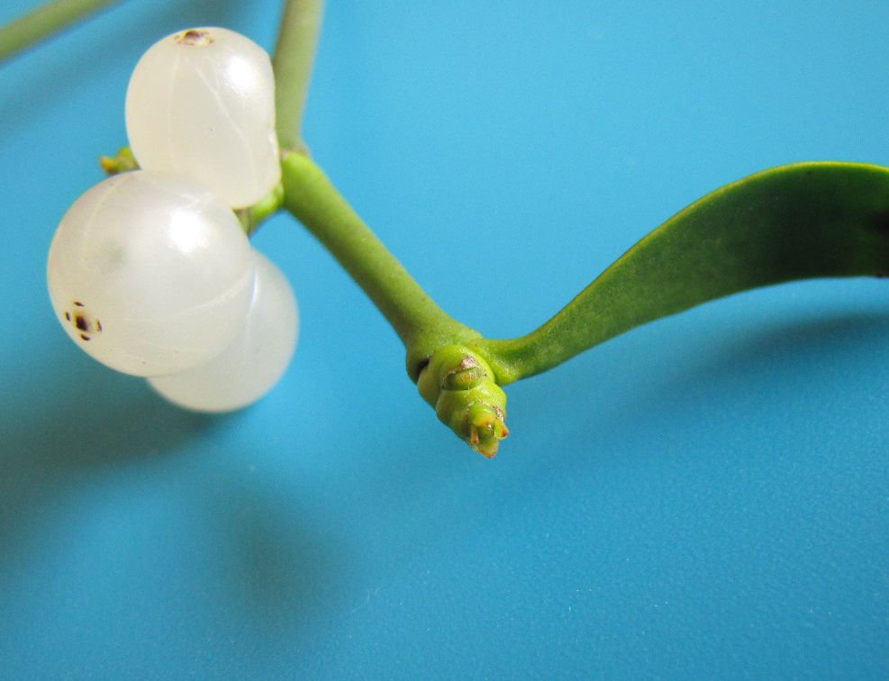 Le fruit globuleux est une baie blanche, transparente, de la grosseur d’un pois, bourrée d’un mélange très visqueux.