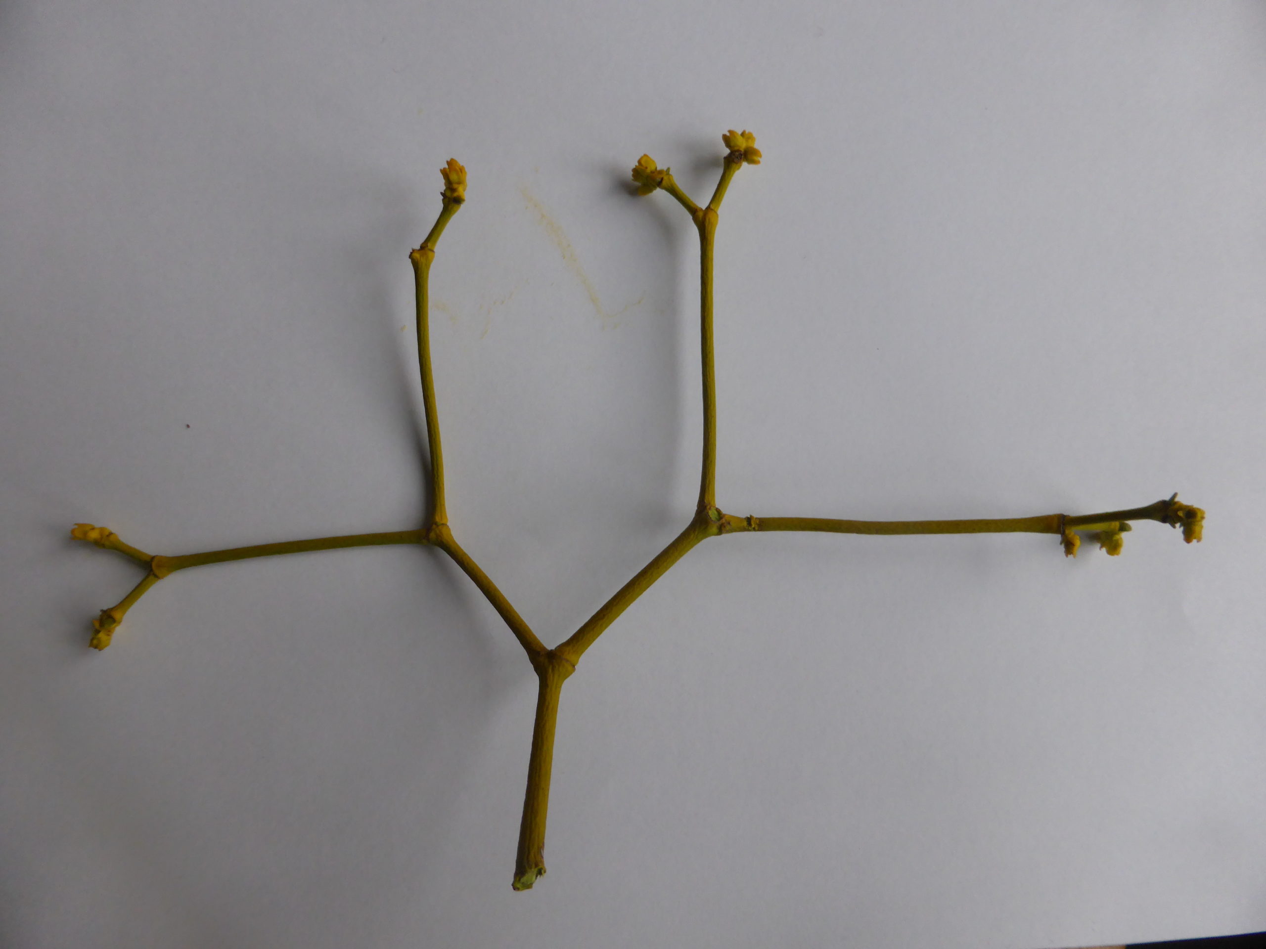 Les fleurs, peu apparentes, verdâtres, les unes mâles, les autres femelles, se développent à la fin de l’hiver par 3-5 glomérules insérées aux embranchements.