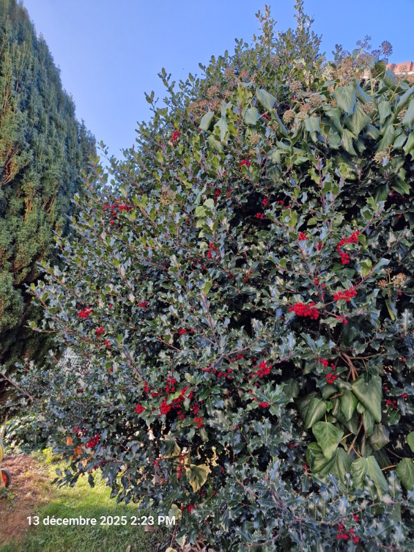 Ses fruits rouge-corail vif dans un écrin de feuilles vernissées évoquent l’atmosphère des fêtes de fin d’année. Ces baies sont toxiques.